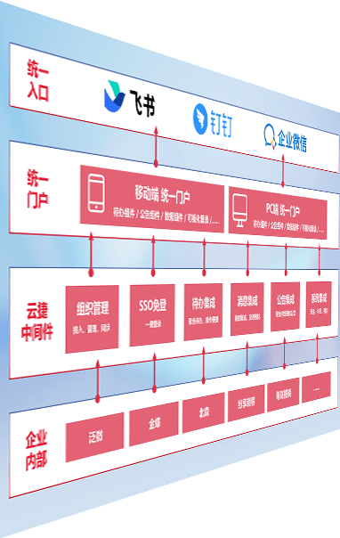 对协作平台提供支持服务,,,支持企业应用与协作平台对接,,包含组织同步、、消息集成、、、、待办集成等。。。。支持目前主流的协作平台:钉钉、、、企微和飞书。。