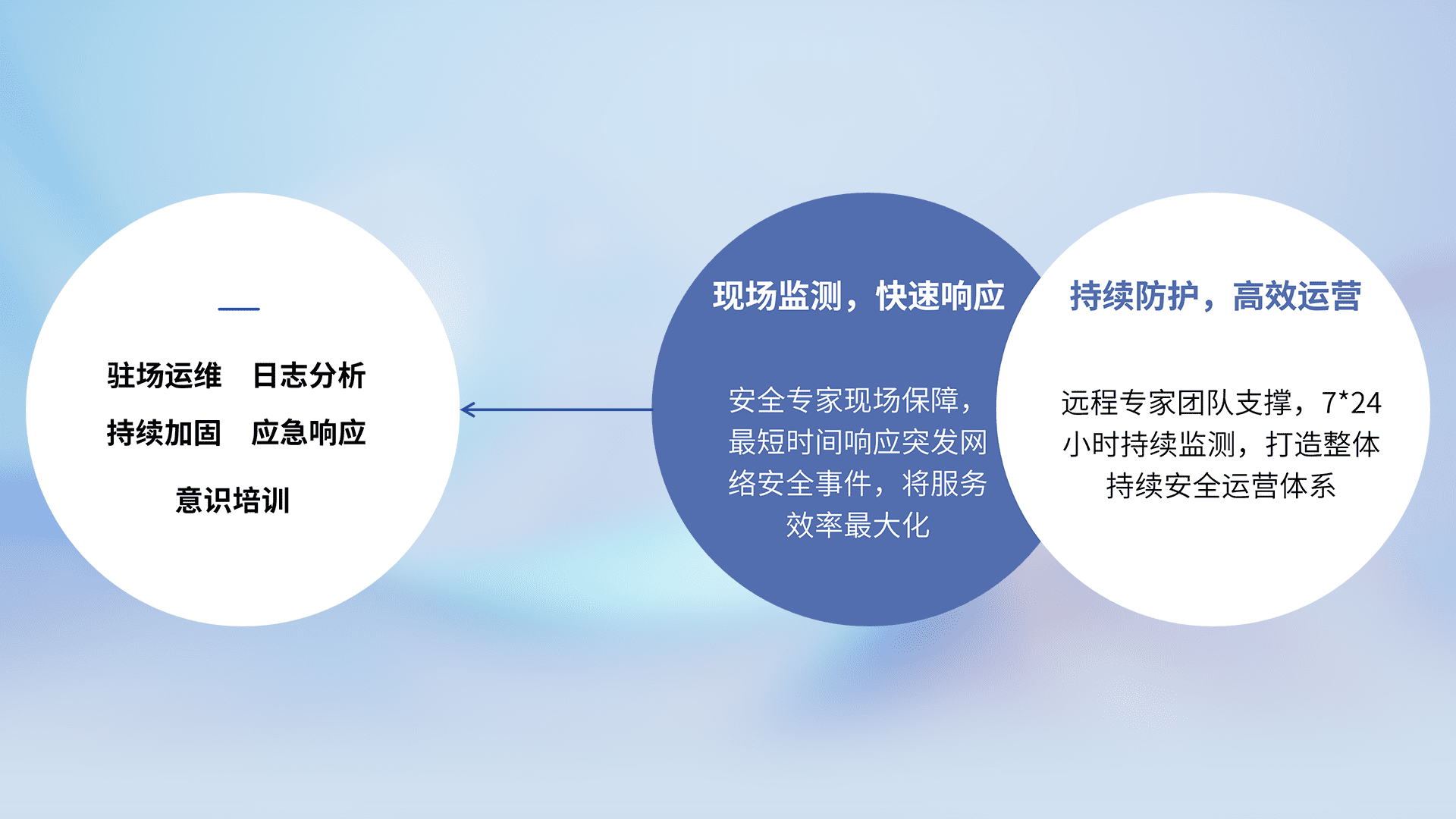 针对客户行业特性,,提供专属的一站式安全管理服务,,,,帮助客户全面感知网络空间威胁,,,,通过安全专家的线上、、线下防护支持,,实现风险闭环,,,,将安全保障常态化,,,为客户打造常态化安全运维运营服务。。